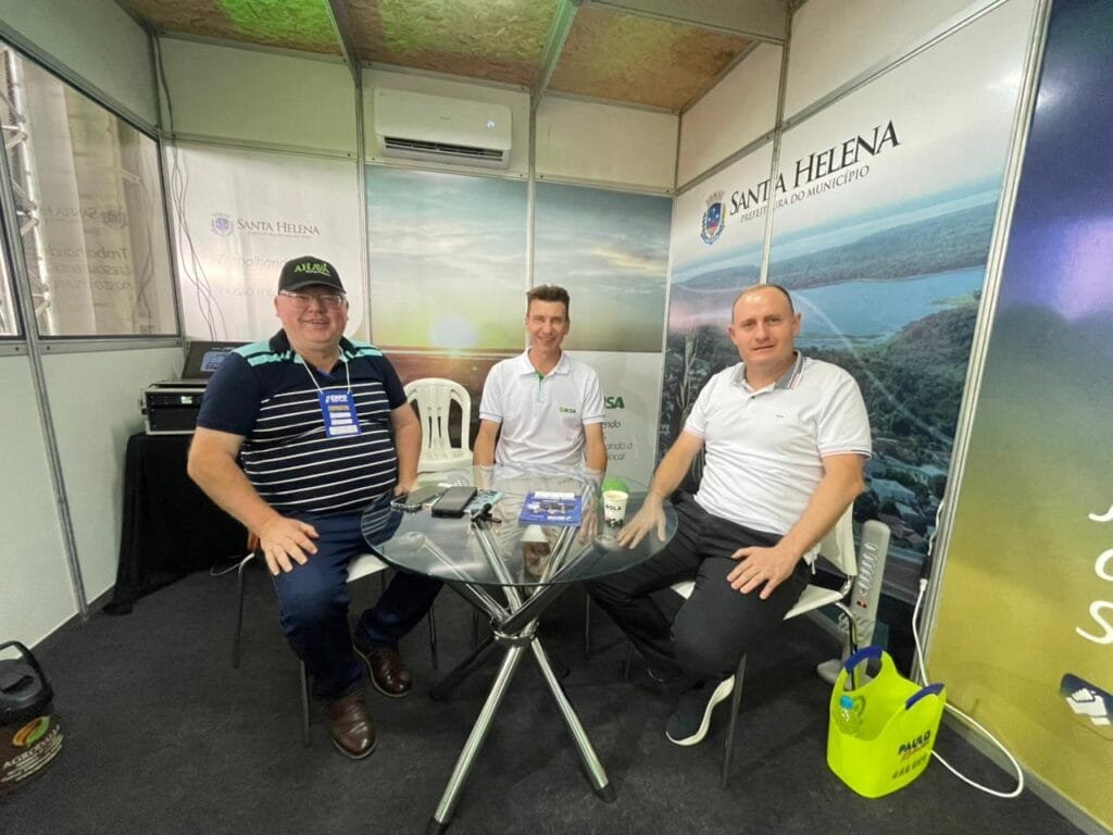 Numa conversa descontraída, Spier ouviu o presidente da Acisa e o ex-prefeito sobre a Expo e também o desenvolvimento regional, via Porto Internacional de Santa Helena.