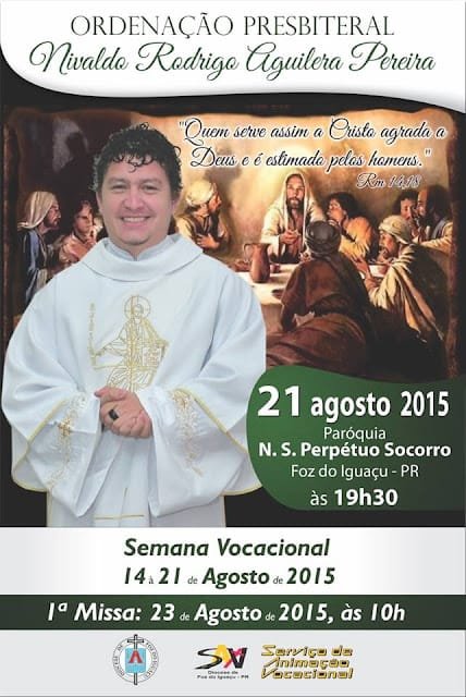 O novo padre que comandará a matriz Santo Antônio de Santa Helena, PR, por determinação episcopal. Nivaldo Rodrigo Aguilera Pereira é filho de Nivaldo Cebrian Pereira e Célia Aguilera, nasceu dia 23 de dezembro de 1987 na Vila Yolanda, Foz do Iguaçu. Nasceu e criou-se nesta comunidade.