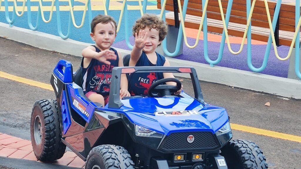 Crianças testando os carrinhos da Escola de Trânsito de SH (Foto: Elder Boff/FE)