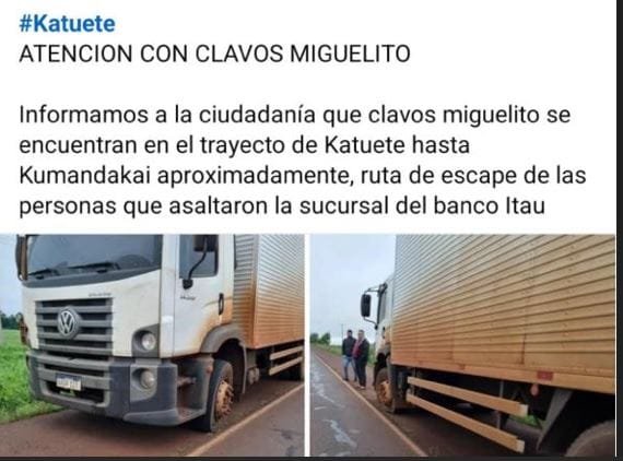 Os assaltantes espalharam “miguelitos” no trajeto de Katueté até Kumandakai para dificultar a perseguição policial.