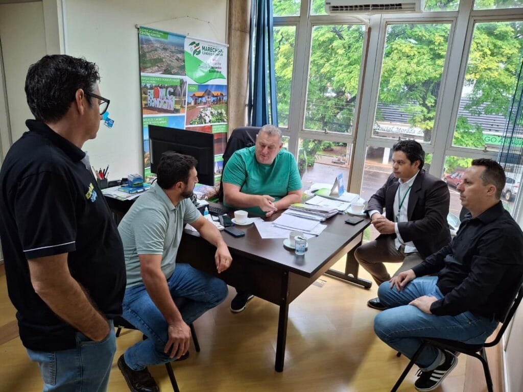 O assessor da Secretaria de Estado do Turismo do Paraná (Setu-PR), Ailton Martins Lima e o jornalista Dielson Pickler, participaram de uma reunião com o prefeito Adriano Backes na manhã desta quarta-feira (29), na prefeitura de Marechal Cândido Rondon.