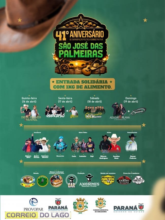 São José das Palmeiras começa nesta quinta-feira (16) uma extensa programação para celebrar o 41º aniversário de emancipação político-administrativa.