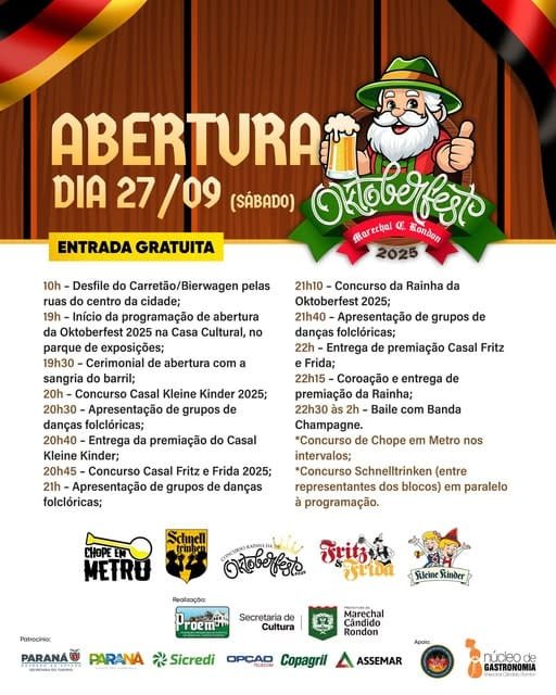 Toda a população está convidada a prestigiar este momento especial, que marca oficialmente a abertura da Oktoberfest 2025 em Marechal Cândido Rondon.