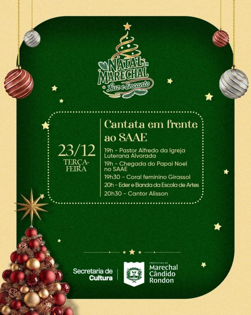 A prefeitura convida toda a população para prestigiar este momento que marca oficialmente o início das festividades natalinas no município.