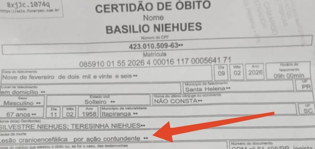 O sepultamento aconteceu no dia seguinte, após rápido velório. Com o inquérito policial em aberto, o caso só se dará por encerrado quando chegar o resultado dos exames do IML. Daí, o resultado de tudo isso vai para a Justiça no Fórum de Santa Helena para que se dê andamento.