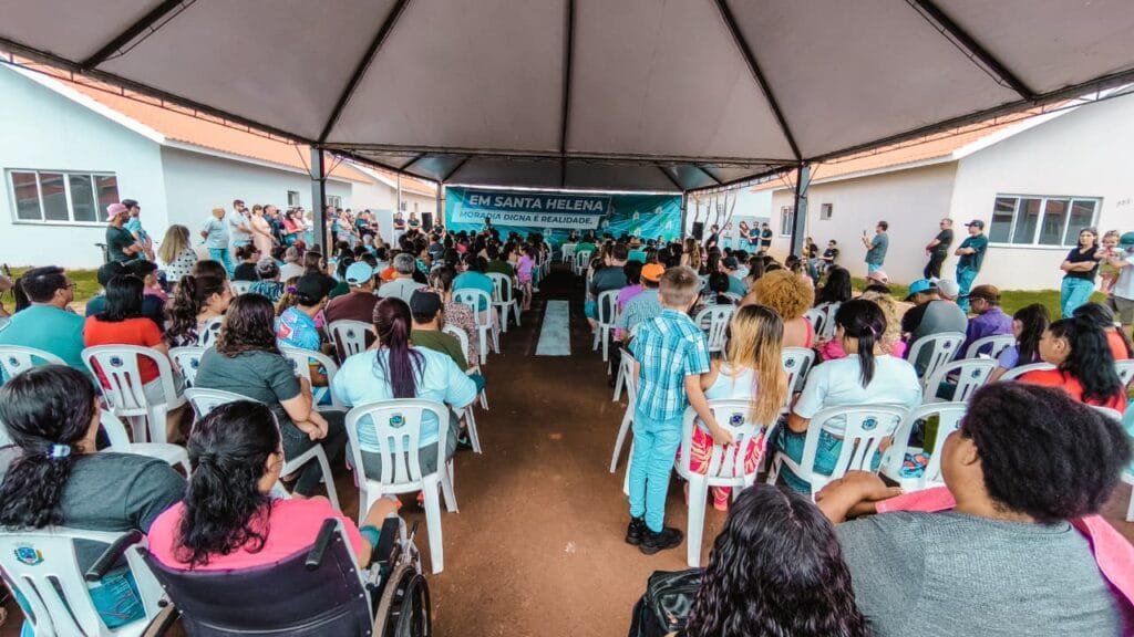 A entrega das 120 unidades habitacionais do Conjunto Porto Seguro, realizada nesta segunda-feira (24), marcou um momento histórico para Santa Helena. Centenas de pessoas acompanharam a cerimônia, que contou com o sorteio para se saber quais casas seriam ocupadas por quem.