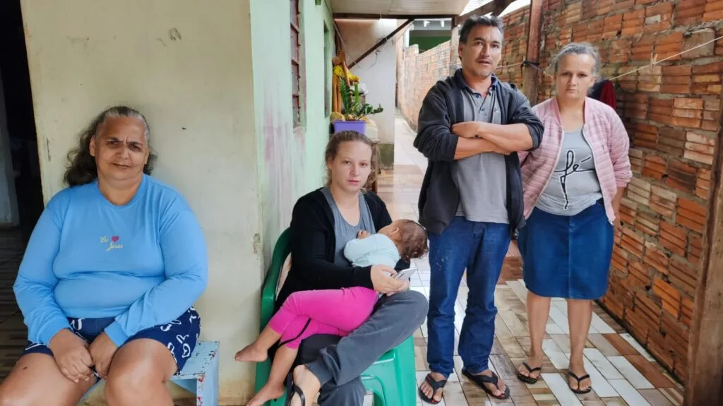 Duas irmãs, sobrinha (com filhinho no colo) e cunhado de Lucinéia, na casa da mãe dela em SH (foto: Elder Boff)