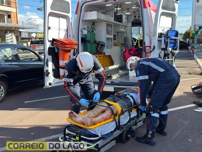 Na tarde de sábado, um rapaz seguia pela Avenida Brasil em uma motoneta com placa paraguaia, no sentido à Praça da Criança, quando ao tentar realizar uma ultrapassagem pela direita, acabou colidindo na lateral de um GM Celta que trafegava no mesmo sentido. Foi parar no hospital, com escoriações.