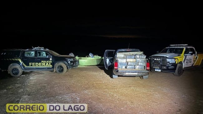 E uma grande apreensão de drogas foi registrada na madrugada da sexta-feira (13), por volta das 2h, às margens do Lago de Itaipu, em Santa Helena Velha. A ação integrada envolveu a Polícia Federal, por meio do NEPOM de Foz do Iguaçu e a Polícia Militar por meio do BPFron.
