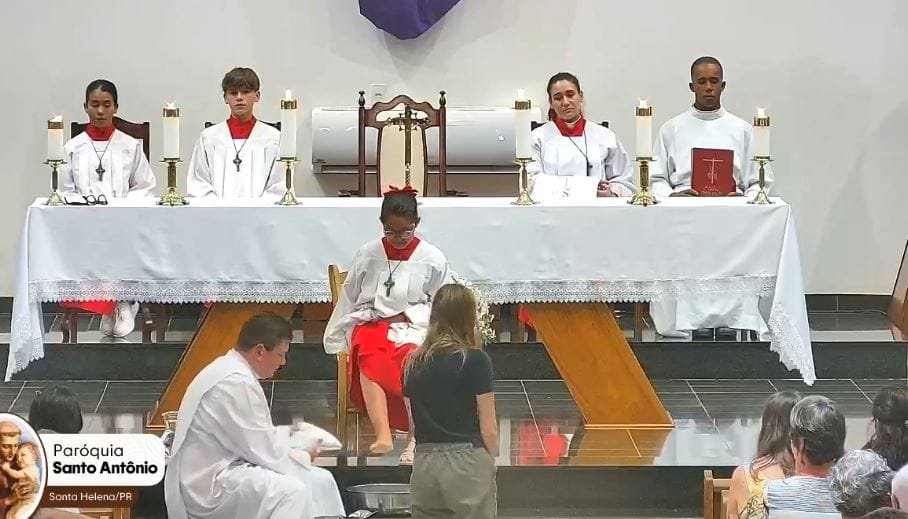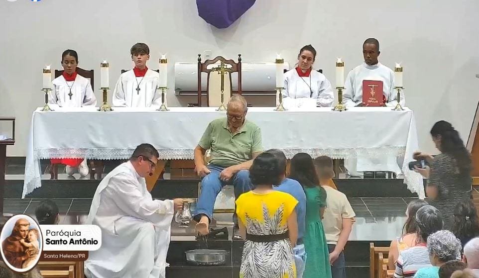 A celebração da Paixão, que vai começar com a procissão das velas (pede-se levá-las) a partir da matriz católica Santo Antônio de Santa Helena, PR, às 19h e encerra um ciclo iniciado ontem com a Missa do Lava-Pés (fotos abaixo) e da Instituição da Eucaristia.