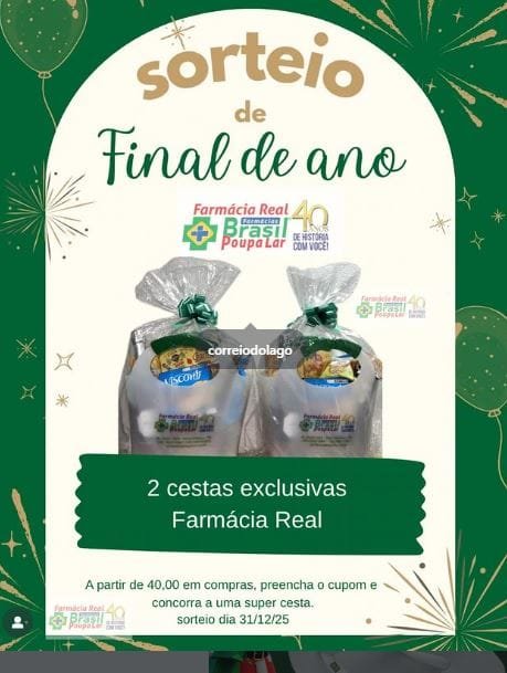 A Farmácia Real Brasil Poupa Lar de Santa Helena, vai sortear duas cestas exclusivas para os clientes neste fim de ano, com produtos voltados ao cuidado e bem-estar.