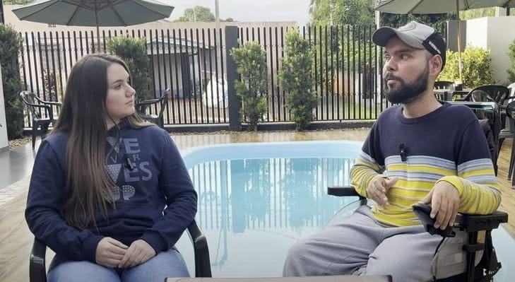 Fê e Maroan durante entrevista dia 30 de abril passado (Reprodução Correio do Lago)