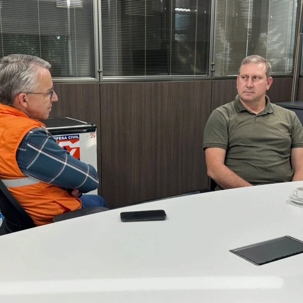 Agnaldo Deresz com o secretário de Defesa Civil de SC Mário Hildebrandt em julho (foto: Assessoria)