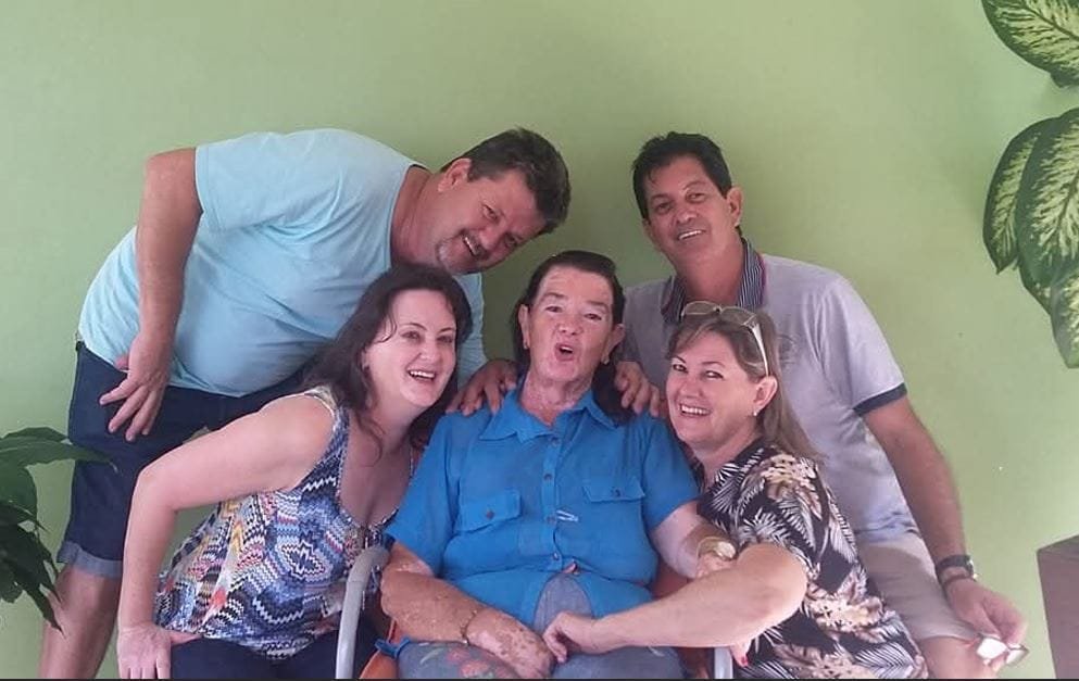 D. Robertina que estava acometida do mal de Alzheimer, em foto recente com os filhos (Facebook)