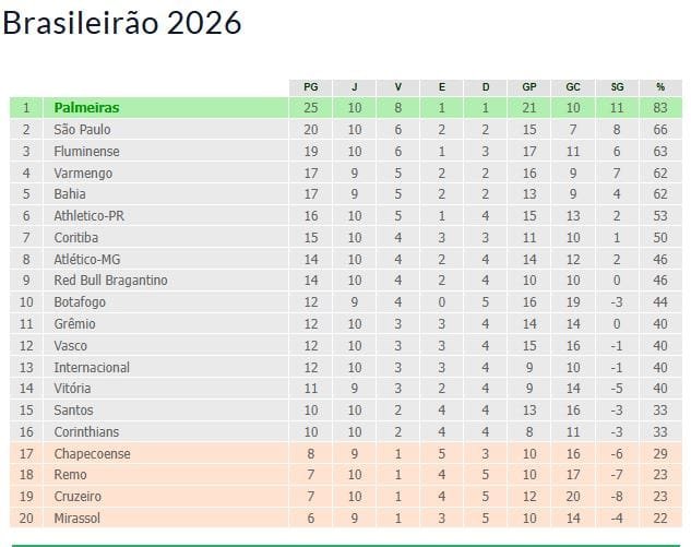 Nos demais jogos da décima rodada do Campeonato Brasileiro, os resultados foram os seguintes: