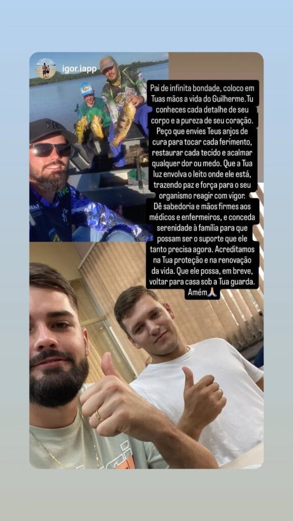 Amigos e parentes entrando na forte corrente de orações, pedindo pela recuperação de Guilherme Draghetti. (Reprodução: Mídias sociais)