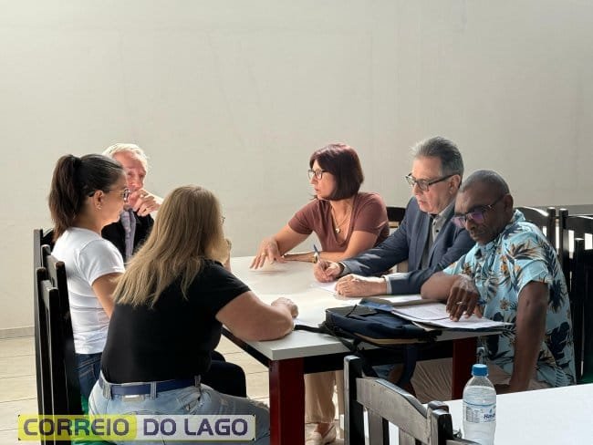Comissão eleitoral reunida com os candidatos (Kassiano Matos/Correio do Lago)