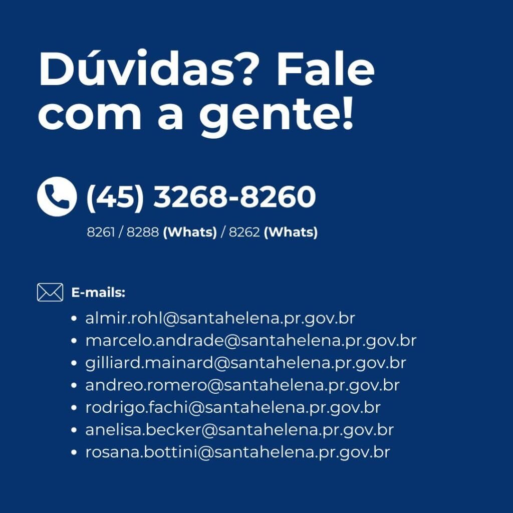 Telefones: (45) 3268-8260 | 8261 | 8288 (WhatsApp) | 8262 (WhatsApp)