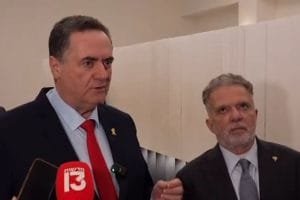 Chanceler de Israel, Israel Katz, durante reprimenda ao Brasil diante de Frederico Meyer – Foto: redes sociais.