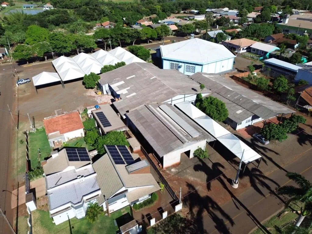 Vista aérea do Centro Comunitário, da nova Matriz Católica e até da Casa Paroquial. (Imagem: Rodrigo Cardoso/Costa Oeste 93)