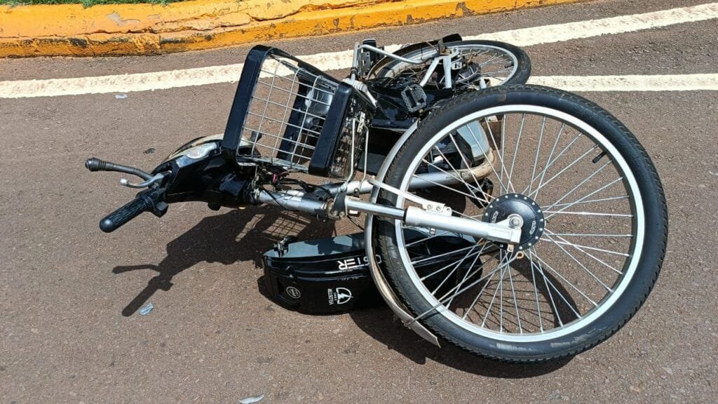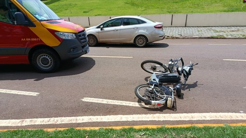 Uma mulher ficou gravemente ferida ao ser atingida por um carro enquanto conduzia uma bicicleta elétrica na tarde desta quarta-feira (05) na área central de Toledo. O acidente mobilizou o Corpo de Bombeiros, o Serviço de Atendimento Móvel de Urgência (Samu) e a Polícia Militar (PM).