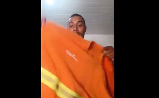 Gari mostrando uniforme, mas foi demitido antes do vídeo segundo a empresa… (Reprodução)