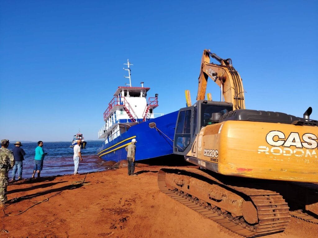 Até amanhã (domingo (28)) a balsa de 85 metros construída do zero no Porto Índio, também estará na água….