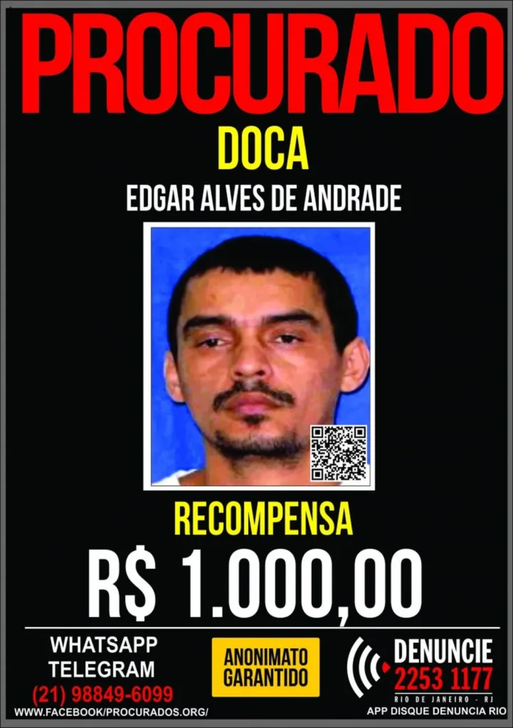 O principal alvo, Edgar Alves de Andrade, o Doca ou Urso, chefe do tráfico no Alemão e Penha e investigado por mais de 100 homicídios, segue foragido. (Reprodução)