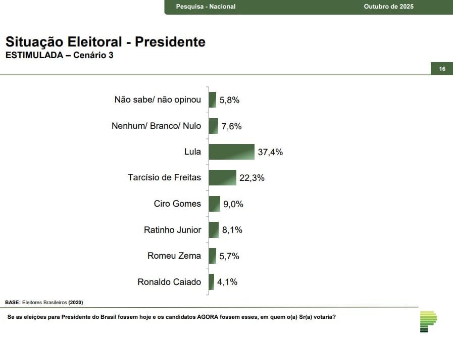 Para um provável segundo turno, o teto de Lula gira em torno de 44% e têm empate técnico com Bolsonaro, Michelle e Tarcísio.