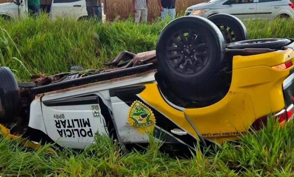 O acidente aconteceu na tarde desta terça-feira (17). De acordo com o Serviço de Atendimento Médico de Urgência (Samu), a viatura aquaplanou e depois capotou.