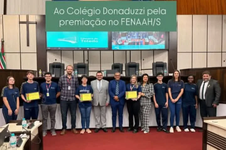 O Colégio e Academia Donaduzzi, localizado no Biopark em Toledo-PR, foi homenageado na Câmara Municipal pelos expressivos resultados na FENAAH/S 2025 (Feira Científica de Altas Habilidades/Superdotação).
