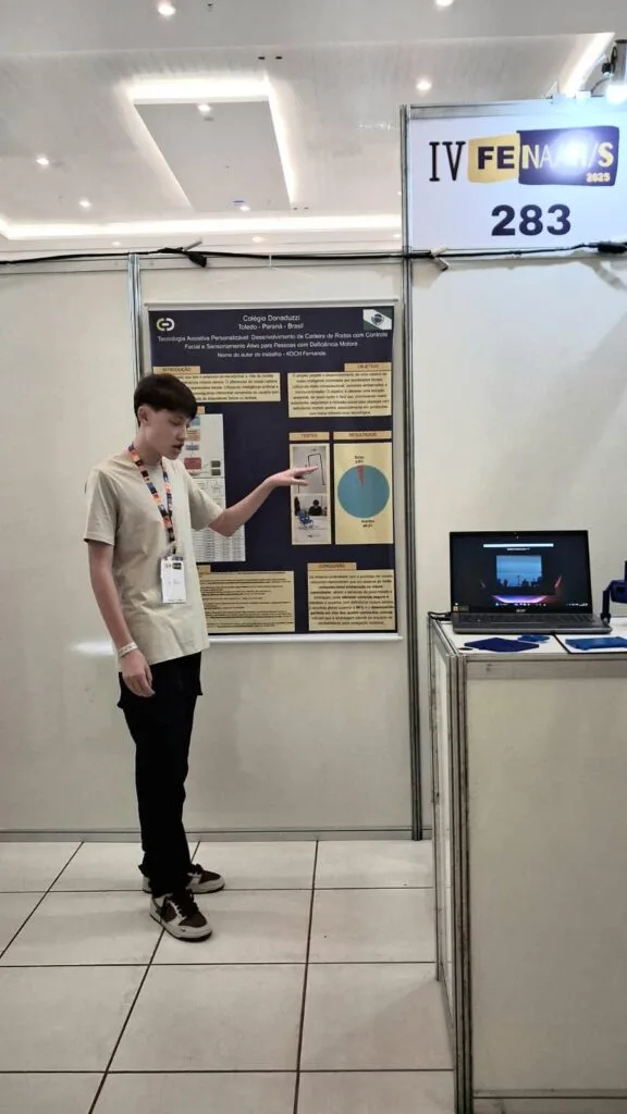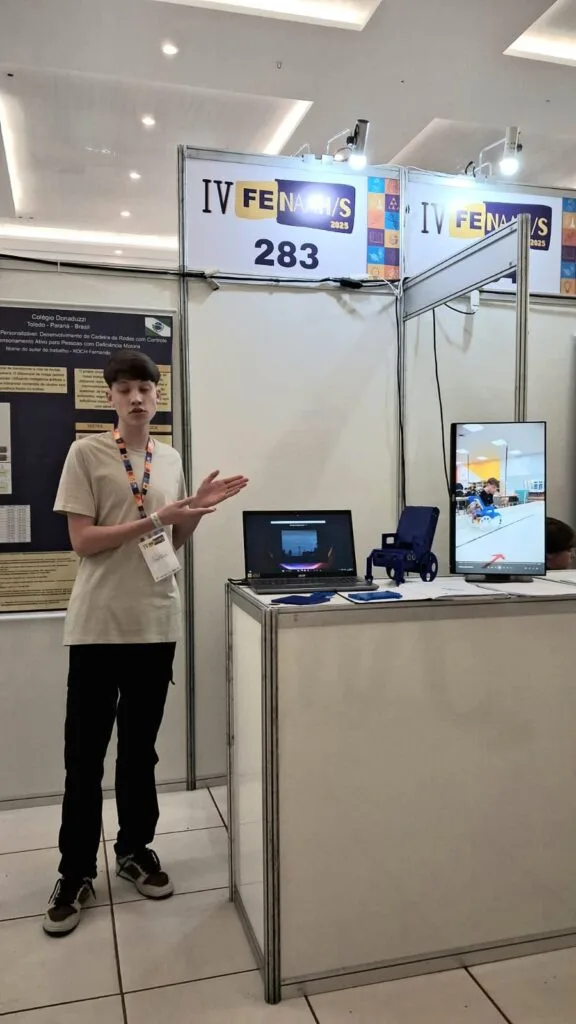 Fernando desenvolveu um projeto de extremo alcance social, uma cadeira de rodas que se movimenta através das expressões faciais.