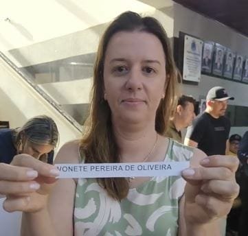 Prefeito Dinho sorteia felizarda moradora (Reprodução)