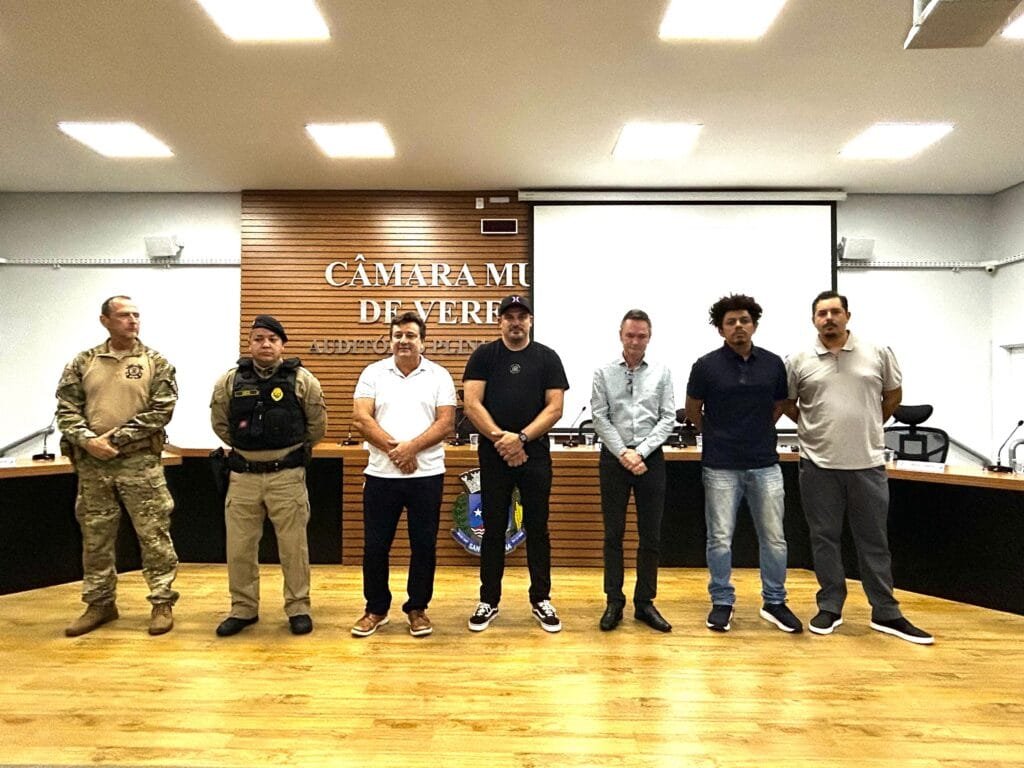Participaram do evento às 18h30 deste sábado (10), o prefeito Clademar Maraskin, o Dinho, presidente da Câmara, Anderson Draghetti, o Mu, além de outras autoridades locais, policiais militares e federais. (Clique aqui e veja a íntegra do evento)