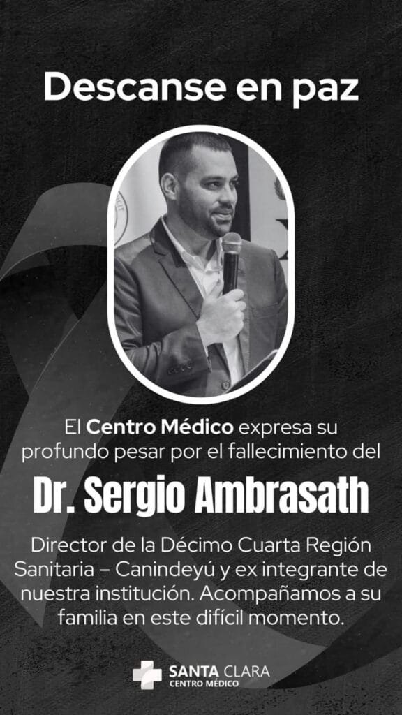 A ministra da Saúde Maria Teresa Barán confirmou o fato nas suas redes sociais. “O departamento perde não só o seu diretor de saúde, mas um notável profissional e grande ser humano”.