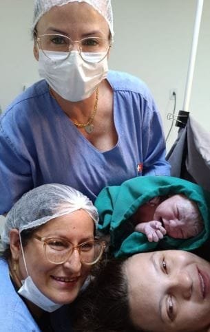 Momentos logo após a cesariana que deu luz à Iris no Hospital Micheletto em Santa Helena no dia 3 de janeiro. (Divulgação/