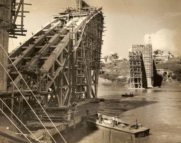 Construção Ponte da Amizade. Foto extraída do Livro: História da Ponte da Amizade/Milena Mascarenhas