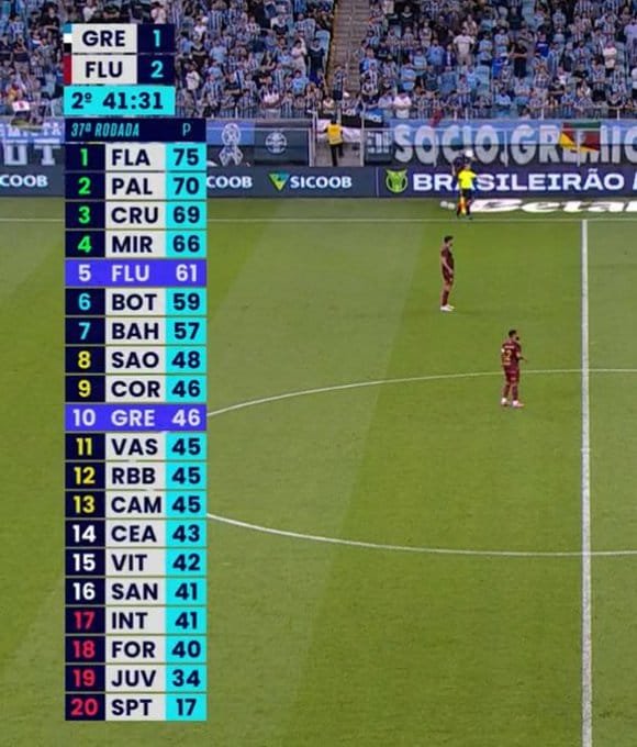 E ainda mais uma…. Se o Grêmio perder seu último compromisso e o Inter vencer seus dois jogos, ultrapassa o tricolor na tabela…