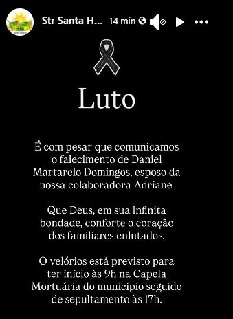 O Sindicato dos Trabalhadores Rurais de Santa Helena, emitiu nas redes sociais, uma nota de pesar pelo falecimento de Daniel, vitimado pelo câncer, esposo da colaboradora Adriane.