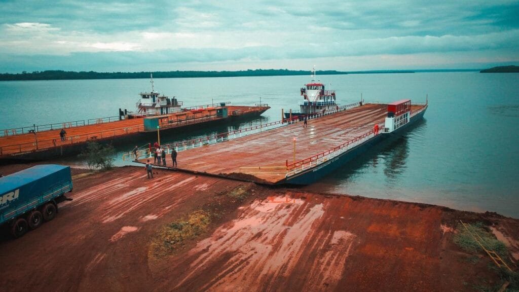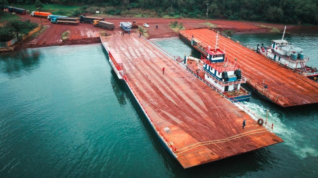 Construída integralmente na beira do lago no Paraguai, com 85 metros de comprimento e capacidade para transportar 24 carretas ao mesmo tempo, a embarcação tem como propulsor, um rebocador, também feito no local, dotado de dois motores de 550hp cada.
