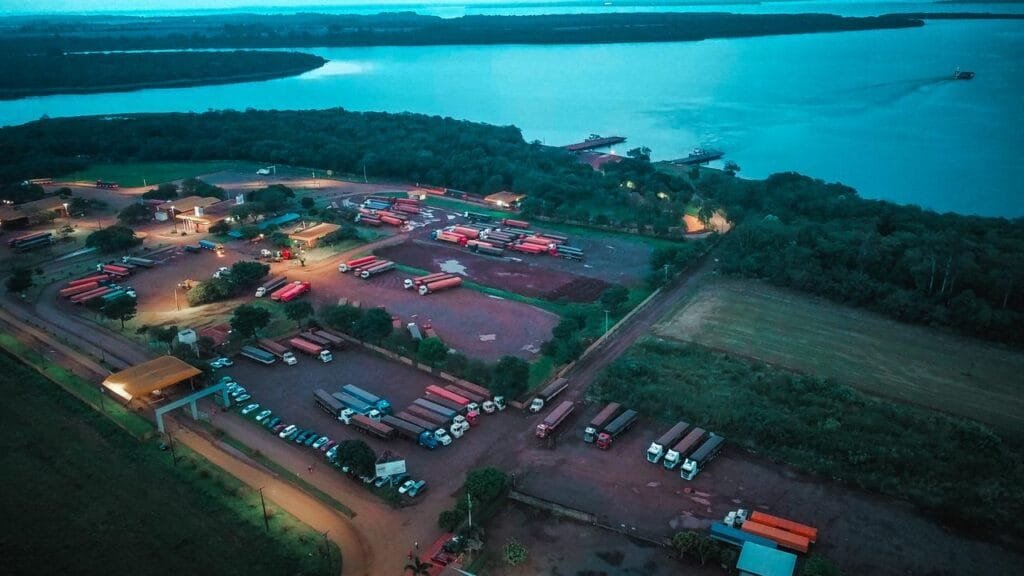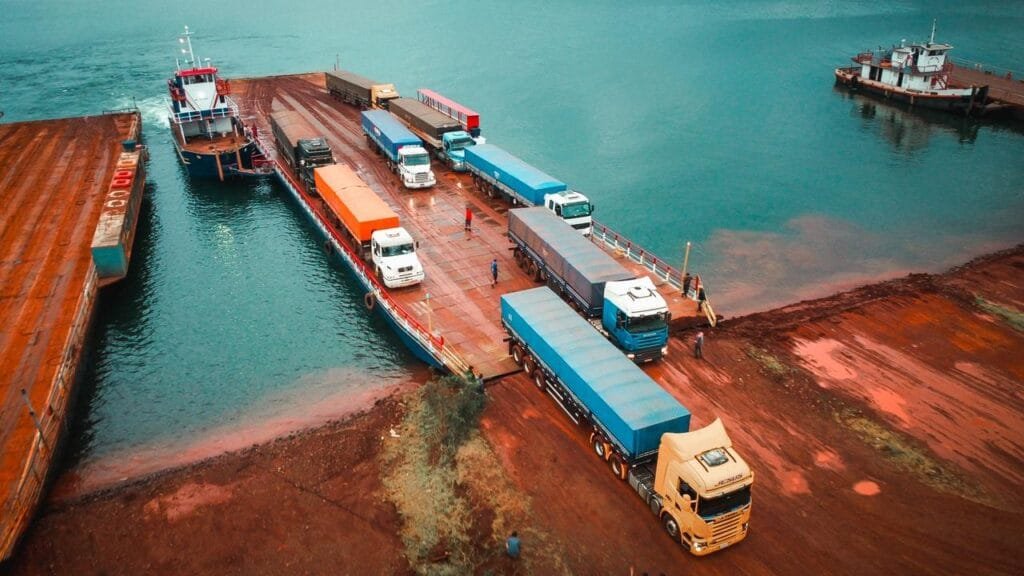 Viagem experimental de nova balsa com 18 carretas chegou ao Porto Internacional de Santa Helena (Vídeo)