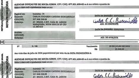 Promissória número 2 de 10 pagamentos de 25.500. Pelo jeito, só uma foi paga e a última vencia em 20 de março deste ano (divulgação)